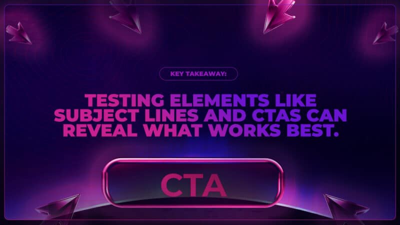 To see which elements perform best, you should test subject lines, CTA (or CTO) buttons, your emails’ layouts, and their sending times. Using insights from these tests, you can continually optimize campaigns for higher engagement and conversions. Don’t forget to test one element at a time! 💡
