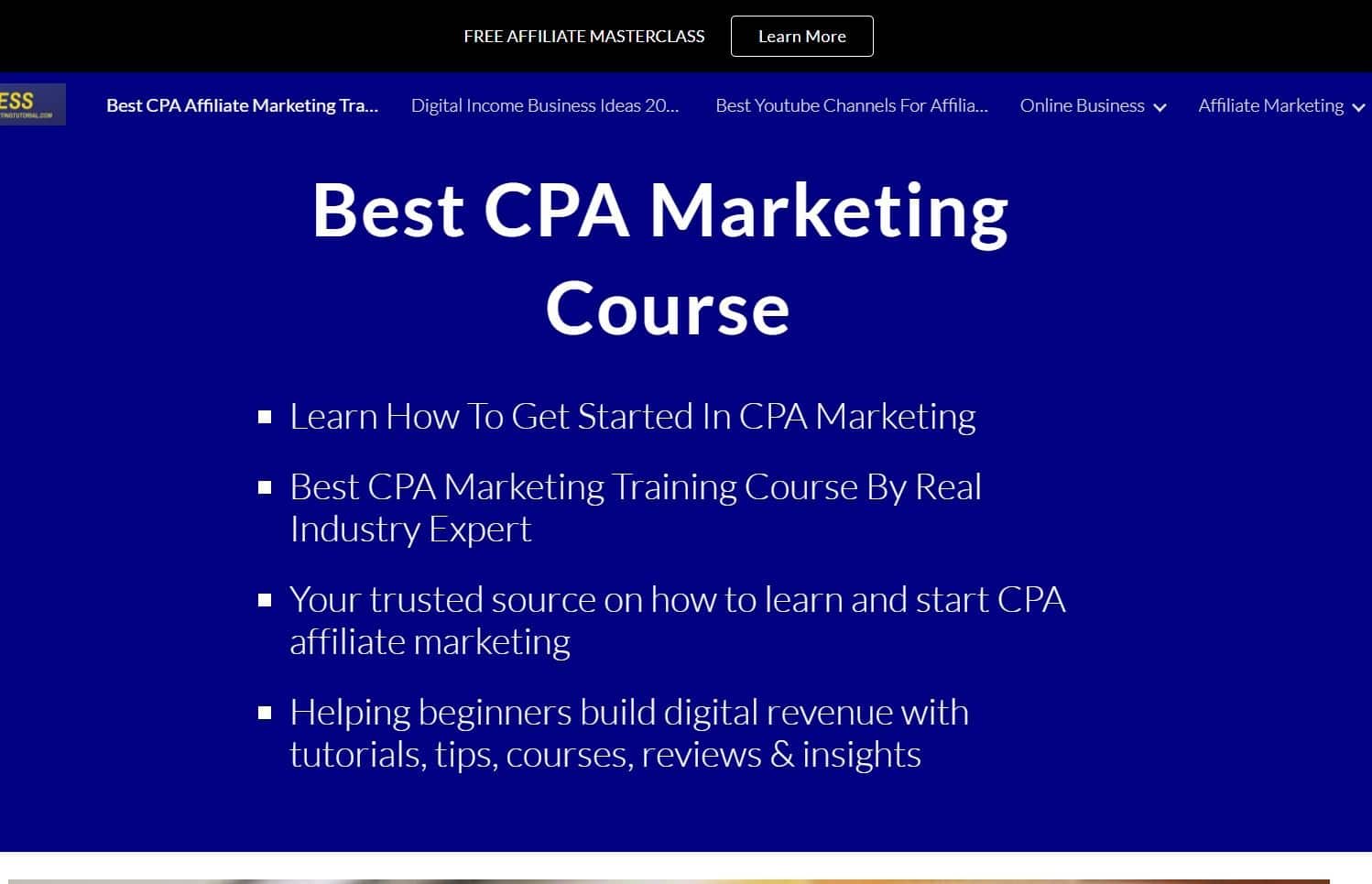 If reviews and prerecorded content are not your cup of tea, then this training is for you. The CPA marketing tutorial is less of an affiliate marketing course and more of an online resource for CPA marketers. Find entire definitions, case studies, and links to online tools for webmasters. Plus, get free suggestions on the type of business to start in order to create a profitable website and boost your income.