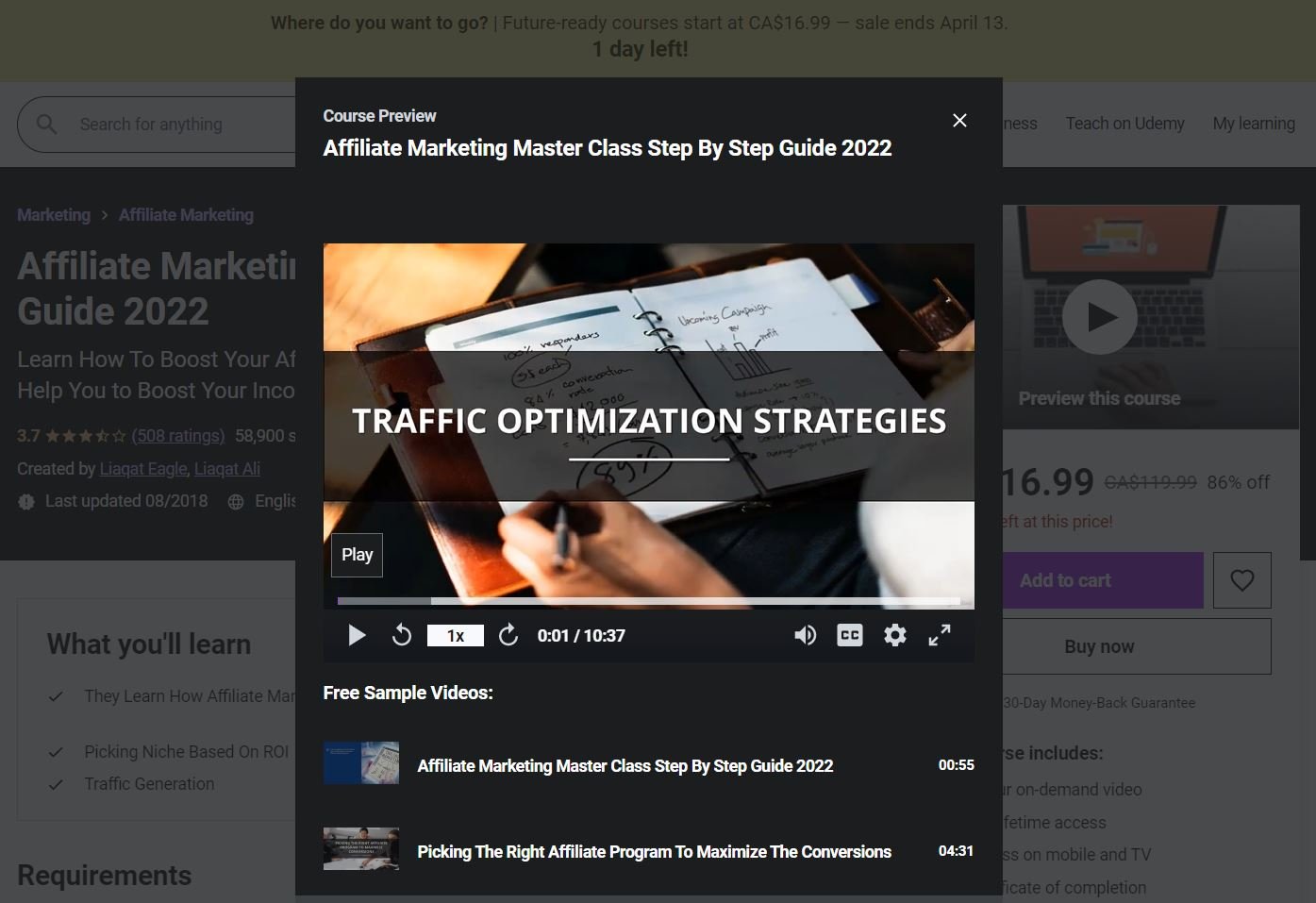 This one-hour masterclass is the newest course on the UdeMy platform. Designed for more experienced affiliate marketers, it dives into traffic generation and selecting the right niche based on expected ROI. Plus, SEO and social media marketing won’t have any secrets for you by the time you are done because you’ll know how to choose the right affiliate program based on your audience and preferred channel.