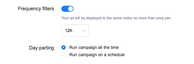 As for frequency filters, it’s best to start with 12h or 24h and adjust according to your needs. Sending out impressions more often works wonders if you need a higher volume.